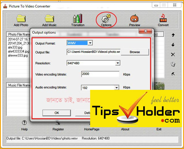 তারপর Add Music বাটনে ক্লিক করে আপনার একটি মিউজিক নিন তারপর Option বাটনে ক্লিক করুন এবার কোন ফরম্যাটে সেভ করবেন তা সিলেক্ট করুন।