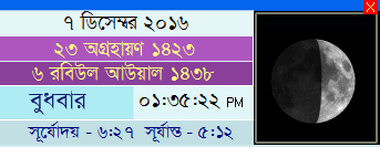 আমি সফটওয়্যারটি সবার স্বার্থে ফ্রি করে দিলাম এবং এর মেয়াদ আজীবন করে দিলাম। ফলে এখন থেকে এর ব্যবহারে আর কোন সীমাবদ্ধতা থাকবে না। এর মাধ্যমে আপনি বাংলা তারিখ, ইংরেজি তারিখ ও আরবী তারিখ জানতে পারবেন এবং প্রদর্শিত তারিখের সূর্যোদয় ও সূর্যাস্তের সময় জানতে পারবেন।