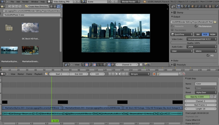 Putting the animation features aside, Blender offers a complete video editor, too. As with all video editors, timelines are present for clips to be placed and moved across the timeline, overlapped, and edited, with an extensive library of effects and transitions. Because of its nature, Blender comprises of advanced features including 2D and 3D motion tracking with animated objects, and camera correction tools to ensure final professional projects.