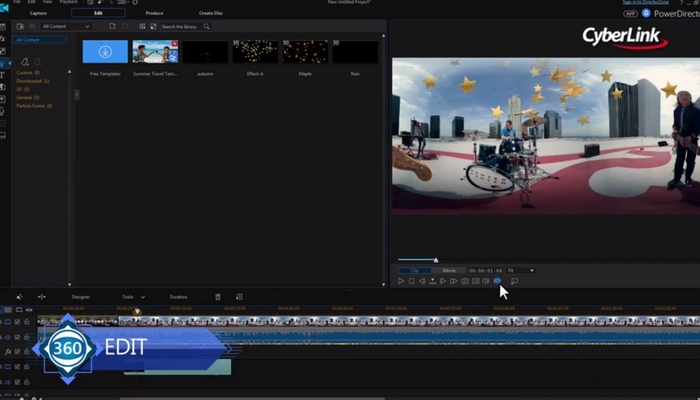 PowerDirector supports 360-degree video editing, allowing you to select specific sequences of clips from the 360 footage, and compiling it into a standard video project. Some limitations of 360 footage mean you can experience some distorted views throughout the video.