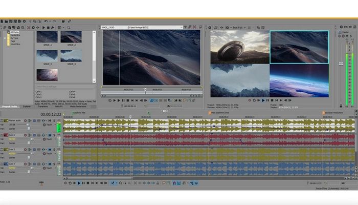 From all in one 2D video editing tools to the most demanding 3D and even 360 ones, Vegas Pro does it all hassle free. We are talking about Blu-ray level content with Dolby Atoms sound quality.