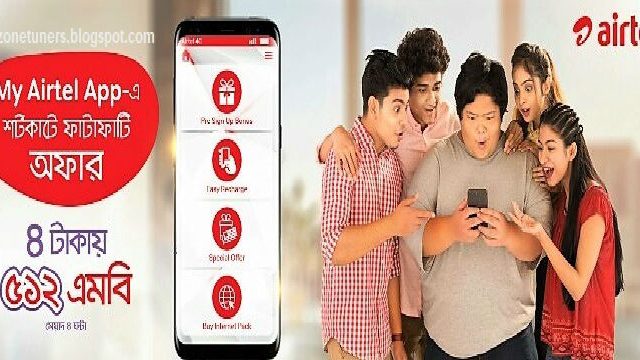 এয়ারটেল প্রি-পেইড গ্রাহকদের জন্য নিয়ে এসেছে ঘন্টাভিত্তিক ৪ টাকা ইন্টারনেট প্যাক অফার যা মাই এয়ারটেল অ্যাপ দিয়ে ক্রয় করা যাবে। যার মেয়াদ ৪ ঘণ্টা।