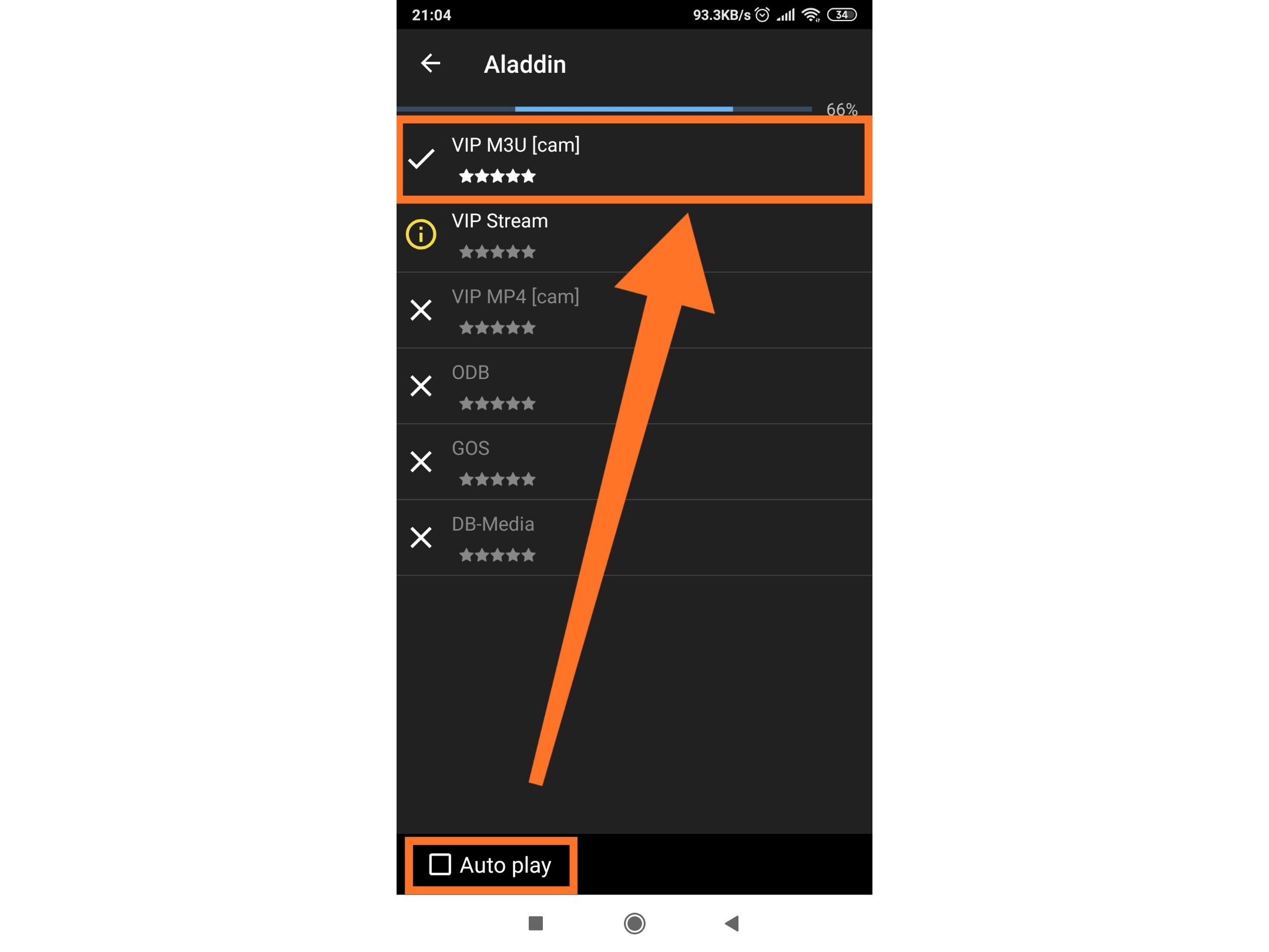 মিডিয়া সিলেক্ট করা হয়ে গেলে, এখন নিম্নে ছবিতে মার্ক করা প্লে বাটনে টাচ করুন। তাহলেই অ্যাপটি অটোম্যাটিক ভাবে সবচেয়ে দ্রুত স্ট্রিমিং সোর্স সার্চ করে বের করবে এবং সর্বোউত্তম সোর্স থেকে স্ট্রিমিং করা শুরু করবে।
