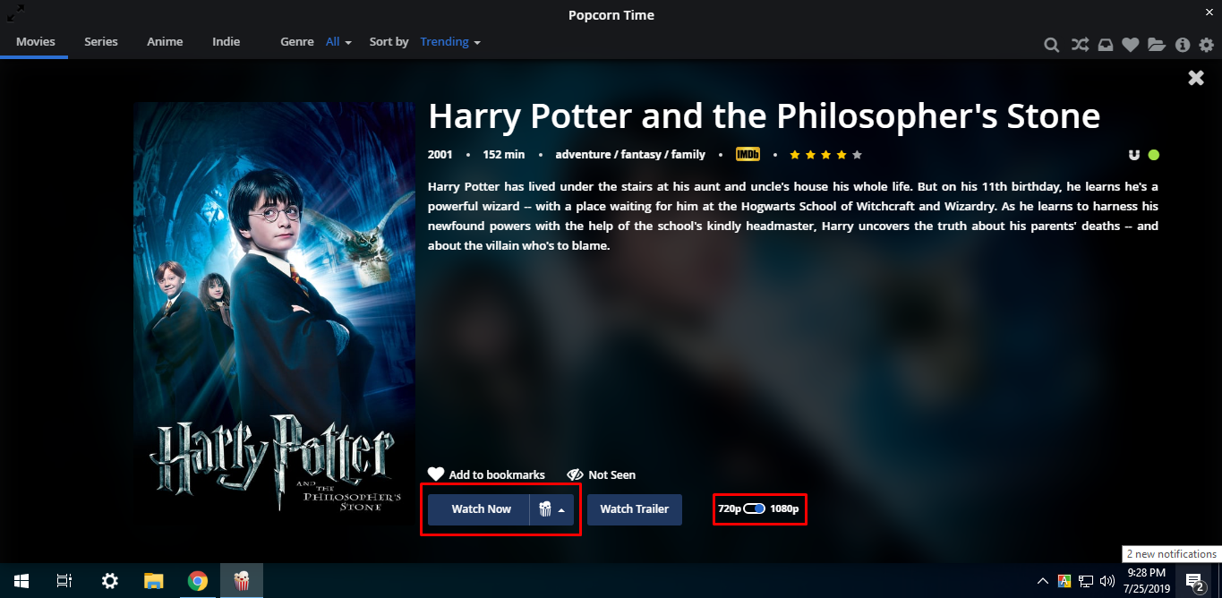 এখন আপনার চাইলে মিডিয়া কোয়ালিটি কমাতে বা বাড়াতে পারবেন, হ্যারি পটার মুভি দুইটি কোয়ালিটিতে দেখতে পাবেন। কোয়ালিটি সিলেক্ট করার পরে Watch Now বাটনে ক্লিক করুন, ভাল ভাবে বুঝতে নিচের ছবিটি দেখুন।