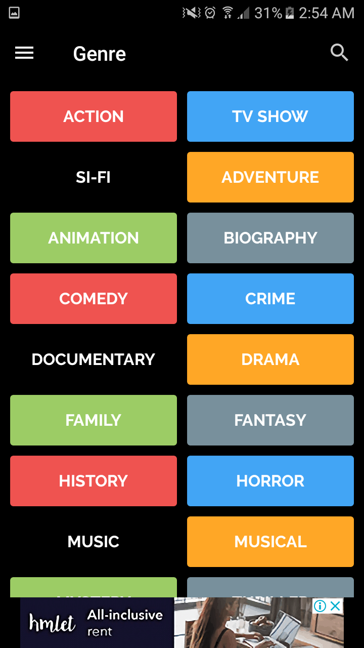 PocketTV এর মাধ্যমে আপনি খুব সহজেই আপনার পছন্দের মুভি ও টিভি সিরিজ খুঁজে পারবেন কেননা এখানে বিভিন্ন ক্যাটাগরিতে মুভি সাজানো আছে।