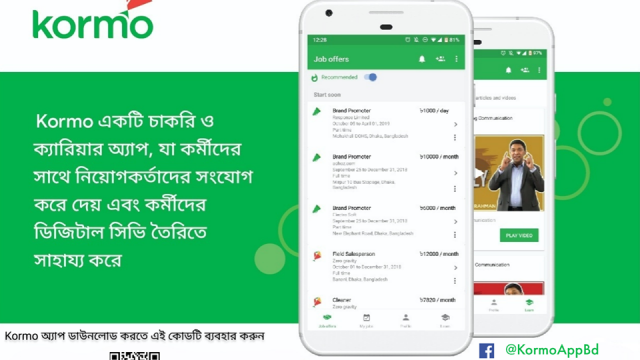 আমি আজকে যে অ্যাপ টা নিয়ে কথা বলছি সেটার নাম kormo। kormo একটি জব ম্যাচিং এন্ড্রয়েড অ্যাপ। kormo এর মাধ্যমে আপনার স্মার্টফোনে মাত্র কয়েকটি ট্যাপের মাধ্যমে আপনার জন্য উপযুক্ত কাজগুলো খোঁজা শুরু করতে পারবেন, যা আপনার ক্যারিয়ারকে এগিয়ে নিতে সাহায্য করবে।