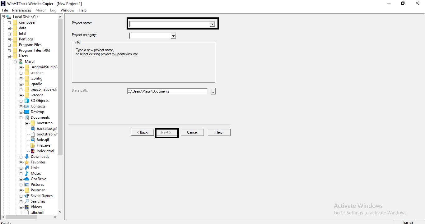 এখানে আপনার কাছে ওয়েব সাইটটি কি নামে সেভ হবে তা জানতে চাইবে। আপনি আপনার পছন্দ মতো নাম দিবেন। এবং একেবারে নিচে একটি Base Path নামে অপশন রয়েছে সেখানে ক্লিক করে চাইলে আপনার ওয়েব সাইটটি কোথায় সেভ হবে তা সিলেক্ট করে দিতে পারেন। সবকিছু সঠিকভাবে দিয়ে Next বাটনে ক্লিক করবেন।