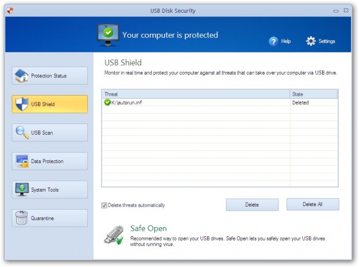 ২. আছে একটি শক্তিশালী ইউএসবি শিল্ড যা আপনাকে সকল অটোরান ভাইরাস সহ বেশ কিছু ভাইরাস হতে মুক্তি দিবে।