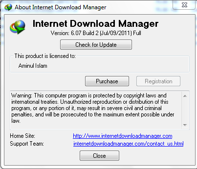 প্রথমে টাস্ক বার থেকে IDM কে বন্ধ (EXIT) করে দিন। তার পর crack ফোল্ডার থেকে idman.exe ফাইলটি কপি করে আপনার কম্পিউটারের C:\Program Files\Internet Download Manager ফোল্ডারে পেস্ট করুন আর রিপ্লেস এর কথা বলেই রিপ্লেস (Yes) করুন। এখন আপনার উইন্ডোজ যদি ৩২বিট (x86) এর হয় তাহলে reg.32.bit.reg এ মাউস এর ডবল ক্লিক দিয়ে ওপেন করুন এবং Yes বাটনে ক্লিক দিন। আর আপনার উইন্ডোজ যদি ৬৪বিট (x64) হয় তাহলে Reg.64.bit.reg এ মাউস এর ডবল ক্লিক দিয়ে ওপেন করুন এবং Yes বাটনে ক্লিক দিন। এবার আপনার আইডিএম ওপেন করে দেখুন একদম ফুল ভার্সন।
