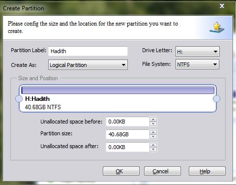 এখানে আপনি Partition Label,Drive Letter,Create as এবং File System ঠিক করে ওকে বাটন এ ক্লিক করুন ।এখানে আপনি ড্রাইভ এর জায়গাও ঠিক করে নিতে পারেন ।