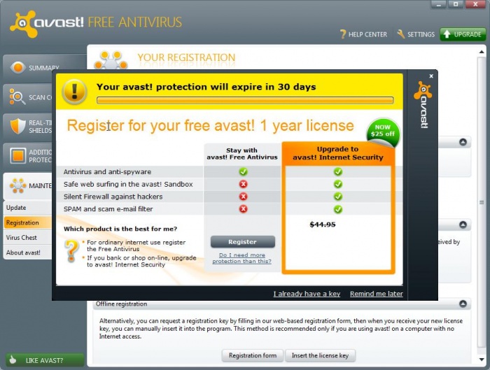 - বিনামূল্যে Antivirus (avast 4.8 হোম জন্য বা 60 দিন) ট্রায়াল মোডে কাজ।সফটওয়্যারটি ডাউনলোড করতে AVAST সাইটে গিয়ে FREE সফটওয়্যার ট্যাবে যান তারপর avast! HOME EDITION ডাউনলোড করুন।সুরক্ষিত থাকার জন্য avast ফ্রি লাইসেন্স key ইমেইল দ্বারা রেজিস্ট্রেশন পর ২৪ ঘন্টার মধ্যে প্রেরণ করা হয়।যদি আপনি আপনার লাইসেন্স ২৪ ঘন্টার মধ্যে না আসে তাহলে, আপনার জাঙ্ক বা স্প্যাম ফোল্ডার চেক করুন।