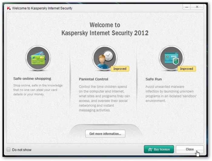 ১. ক্যাস্পারস্কি ইন্টারনেট সিকিউরিটির ওয়েলকাম স্ক্রীন এটি।