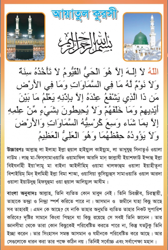 তাই নিয়ে নিন আয়াতুল কুরসীর উচ্চারণসহ বঙ্গানুবাদ।