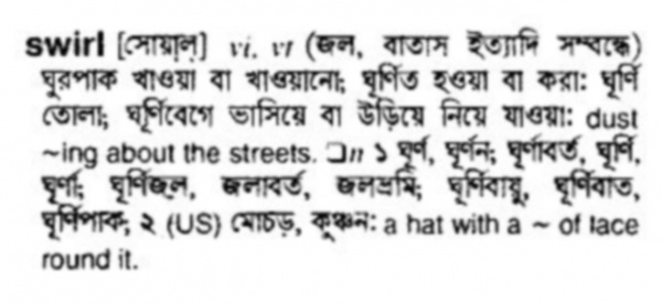 ৪ ও ৫। টিভিতে একটা ফ্রিজের বিজ্ঞাপন দিত আগে, whirlpool নামের। মনে আছে ? whirlpool থেকে swirl নামটা মনে রাখতে পারেন। আর ফ্রিজের ডিপ খোলার পরে আমরা সাধারণত কি দেখি বলেন তো। হুম ঠিক ধরেছেন। আমরা দেখি যে সাদা সাদা ঠাণ্ডা বাষ্পগুলো কেমন ঘূর্ণি খাচ্ছে বাতাসে। এই ঘূর্ণিই swirl ।