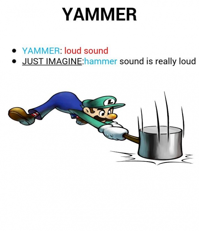 ৩। হাতুড়ি ( hammer ) দিয়ে সাধারণত যদি কোন কাজ করা হয় তাহলে সেখানে উচ্চ শব্দ হয় এবং সে শব্দ একটি নিয়মত বিরতিতে হতে থাকে। এই ধরনের শব্দকে yammer ( loud and sustained or repetitive noise.) বলে।