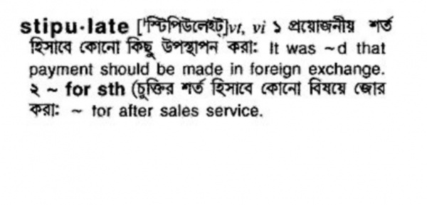 মনে করুন আপনি জবের জন্য এপ্লাই করবেন। কোম্পানি থেকে শর্ত দেওয়া আছে যে জব এপ্লিকেশানের সাথে আপনার সার্টিফিকেট ও দিতে হবে। এখন আপনি যদি এপ্লিকেশান ফর্মের সাথে সার্টিফিকেট Staple করে দেন, সেটাই stipulate