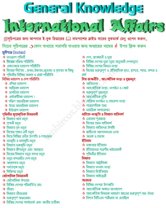 * এখানে আন্তর্জাতিক বিষয়াবলির মোট ১০০ টপিক্স দেওয়া আছে …
