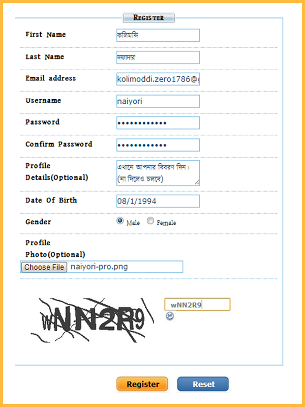 খ) সেখানে দেখবে নিচের চিত্রের মত একটি রেজিষ্ট্রেশন ফর্ম এসেছে। ঠিকঠাক মত সেটা পূরণ করে Register বাটনে ক্লিক করবে।
