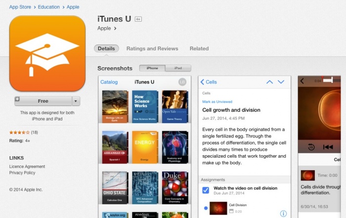 অনলাইন এডুকেশনের জন্য সব থেকে জনপ্রিয় একটি মাধ্যম iTunesU। আপনি অ্যাপেলের বিভিন্ন ডিভাইসের মাধ্যমে এখান থেকে বিভিন্ন টপিকস অনুসারে শিক্ষা কার্যক্রম নিতে পারবেন। iPad, iPhone এবং iPod touch ব্যবহারকারীরা খুব সহজে iTunesU অ্যাপের মাধ্যমে শিক্ষা নিতে পারবেন। বিভিন্ন ক্যাটাগরি বেজড সাজানো শিক্ষা কার্যক্রম থেকে আপনি আপনার পছন্দের বিষয় সহজে খুজে বের করতে পারবেন। এখানে অনেক ধরণের হাই-কোয়ালিটি ভিডিও পাবেন তবে কিছু ফ্রি আর কিছু কন্টেন্ট পেইড। আরও একটা বিষয় আপনি এন্ড্রোয়েড বা উইন্ডোজ ব্যবহার করলে এই শিক্ষা থেকে বঞ্চিত হবেন।