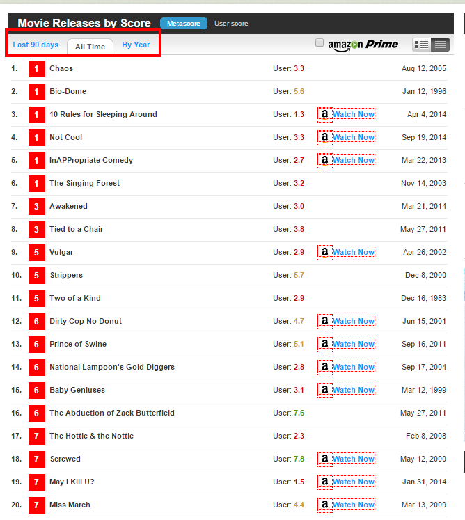 তাছাড়া Metacritic সর্বকালের সেরা ২০০ মুভির লিস্টও তৈরি করেন।