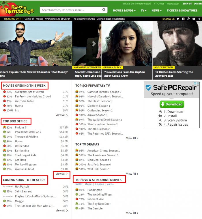 Rotten Tomatoes মুভি প্রেমীদের খুব পছন্দের একটি সাইট। এখানে আপনি এই সপ্তাহে সব থেকে জনপ্রিয় মুভি কি কি বা এই মাসের সব থেকে আলোচিত মুভি কোনগুলা সব জানতে পারবেন। সাথে আপকামিং কোন মুভি এখনই আলোচনার কেন্দ্র বিন্দু এবং তার সকল নিউজ জানতে পারবেন Rotten Tomatoes নামের এই মুভি ওয়েব সাইটের মাধ্যমে।