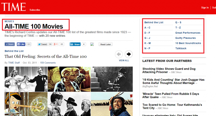 TIME magazine film critics এলফাবেটিক্যালি দারুণ ১০০ মুভির লিস্ট তৈরি করে। আপনি চাইলে এখান থেকে সবগুলো মুভি দেখে নিতে পারেন।