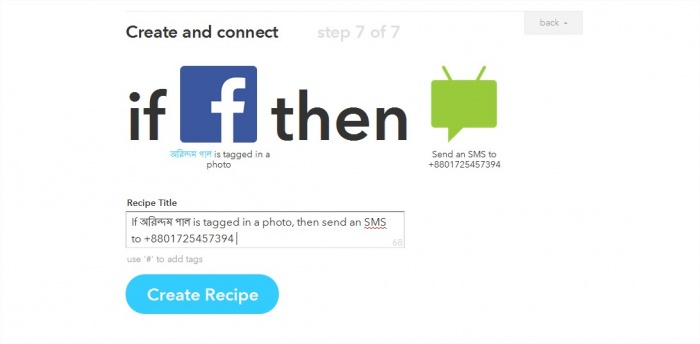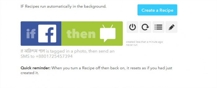 এখানে ক্রিয়েট রিসিপ এ ক্লিক করলেই আপনার কাজ শেষ। এভাবে আপনি আপনার সুবিধা মত বিভিন্ন চ্যানেল থেকে ইফ ও ডু রিসিপ তৈরী করতে পারেন ও সেগুলো আপনার বাস্তব জীবনে কাজে লাগাতে পারেন।