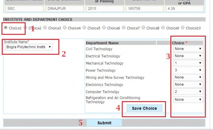 ৩.একজন প্রার্থী যেসব শিক্ষা প্রতিষ্ঠানে যে টেকনোলজিতে ভর্তি হতে ইচ্ছুক তাহা প্রতিষ্ঠান–টেকনোলজি ভিত্তিক পছন্দের ক্রমানুসারে নির্বাচন করতে হবে।
