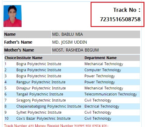 ১৭. আবেদনকারীকে অবশ্যই Track Number টা নোট করে রাখতে হবে, কারণ এই Track Number টা পরবর্তীতে Result এ ব্যবহার করতে হবে।