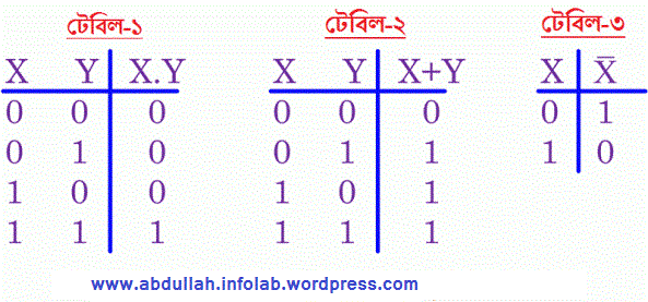 (ক) যখন X=0 তখন 0.0ʹ=0.1=0 আবার যখন X=1 তখন 1.1ʹ=1.0=0 সুতরাং X এর সকল মানের জন্য X.X̅=0 প্রমাণিত।