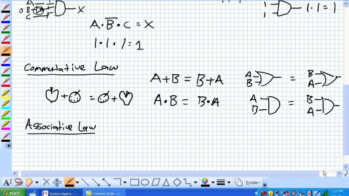১। বিতরণ সূত্র + অপারেটরকে . এর উপর বিতরণ, যেমনঃ X+(Y.Z)=(X+Y).(X+Z) বুলিয়ান বীজগণিতের ক্ষেত্রে প্রযোজ্য হলেও সাধারণ বীজগণিতের ক্ষেত্রে প্রযোজ্য নয়।