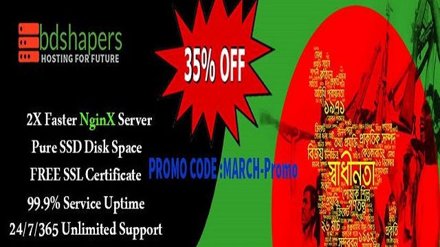 এই স্বাধীনতার মাসে #বিডিশেপার্স -থেকে এসএসডি হোস্টিং পাচ্ছেন ৩৫% ডিসকাউন্ট অফারে। মাত্র ৮০ টাকায় ১জিবি SSD হোস্টিং। পাচ্ছেন সহজে বিকাশ পেমেন্ট এর সুযোগ ও বাংলায় সাপোর্ট নেবার ব্যাবস্থা।