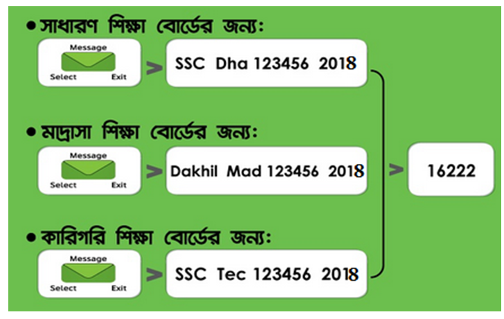 এস এম এস এর মাধ্যমে SSC result 2018 জানার পদ্ধতিঃ