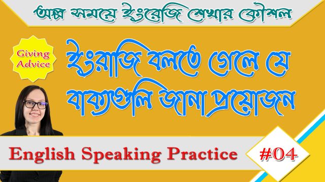 আজ আমরা শিখব এমন কিছু বাক্য যা ইংরাজি বলতে গেলে জানা প্রয়োজন। English Speaking Practice course - Giving Advice. বাংলায় আমরা নানা ধরনের বাক্য বলে থাকি যেমন আদেশ অনুরোধ জিজ্ঞাসা ইত্যাদি। তবে আজকের এই বাক্য গুলি দিয়ে শিখব কিভাবে উপদেশ দিতে হয়। ইংরাজিতে এই ধরনের বাক্যকে বলা হয় Imperative sentence. দেখবেন স্কুলে শিক্ষকরা বাড়িতে বাবা মা বা গুরুজনেরা আমাদের এই ধরনের কথা বলে থাকেন। এই বাক্যগুলি আমাদের জীবনে অত্যন্ত প্রয়োজন। আর আপনি যদি এই বাক্য গুলি শিখে নিতে পারেন তাহলে আপনার spoken English অনেকটা এগিয়ে যাবে। এই ধরনের বাক্য বলতে গিয়ে আপনি জড়িয়ে যাবেন না। দেখবেন আপনি confidently ইংরাজি বলতে পারছেন। তার মানে এটাই দাঁড়ায় যে আপনিও এবার সবাইকে উপদেশ দিতে পারবেন তবে বাংলায় নয় ইংরাজিতে।