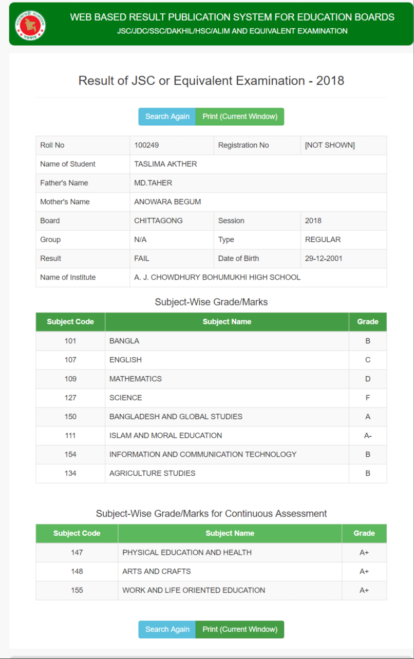 আমার প্রাপ্ত রেজাল্টের স্ক্রিনশট