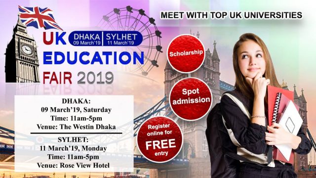 যুক্তরাজ্যে পড়াশুনা বিষয়ক ফ্রি শিক্ষা মেলা অনুষ্ঠিত হতে যাচ্ছে আগামী ৯ মার্চ ঢাকা ওয়েস্টিন হোটেল, গুলশান এভেনিউ ও আগামী ১১ মার্চ রোজ ভিউ হোটেল, সিলেট। শিক্ষা মেলাটি আয়োজন করেছে EN গ্লোবাল এডুকেশন। শিক্ষা মেলা সবার জন্য উন্মুক্ত।