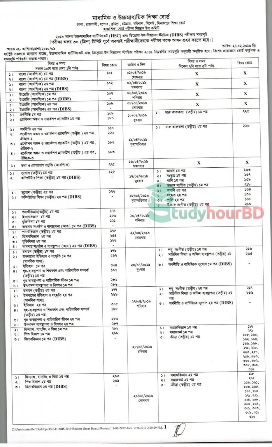 জেনে নিন ২০১৯ সালের এইচএসসি পরীক্ষার রুটিন