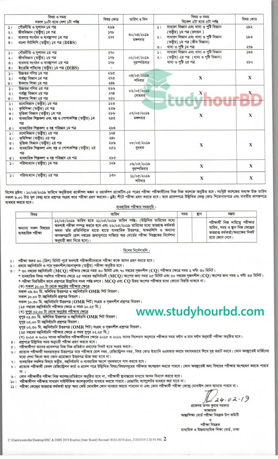 নিচে এইচএসসি পরীক্ষার রুটিন তুলে ধরা হলো