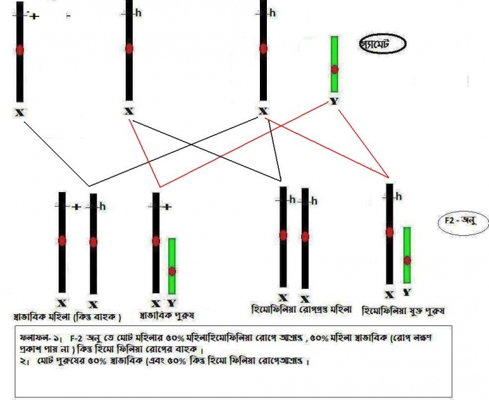এবং পুরুষ দের ক্ষেত্রে ৫০% পুরুষ স্বাভাবিক ও ৫০% পুরুষ হিমোফিলিয়া রোগগ্রস্ত ।