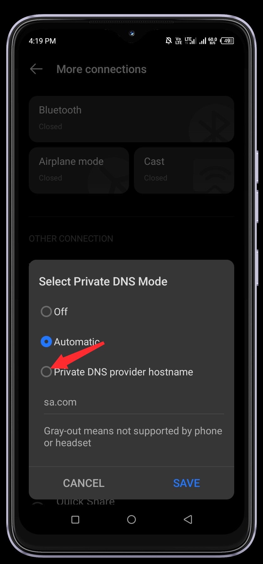 🔶 তারপর Private DNS এ ক্লিক করতে হবে।