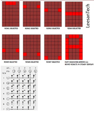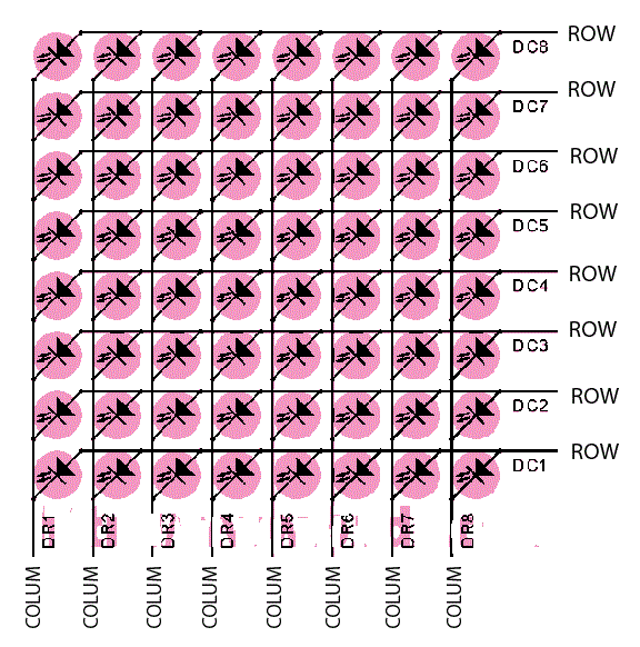 74HC164 আইসি আছে তাই ৬ গুণন ৮ সমান ৪৮ টি কলামের মাধ্যমে বাইনারি ফর্মে আউট পুট পাওয়া যাবে । একই সাথে "র" ROW তথ্য প্রদান