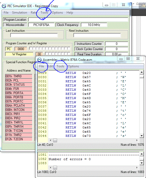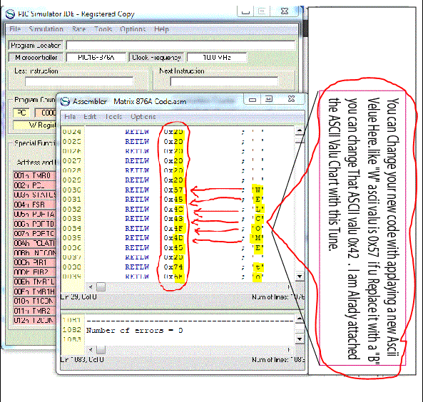 এবং এডিট শেষে assembler এর Tools এ গিয়ে Assemble & Load এ ক্লিক করে কোড জেনারেট করতে হবে এবং উক্ত হেক্স কোড মাইক্রো কন্ট্রোলে ব্যবহার করুন।