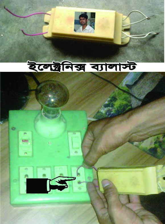 এবার ১ ও ২ নং তার বোর্ডের সকেটের দুই ছিদ্রে প্রবেস করাই দেখবেন বাল্বের ফিলামেন্ট হাল্কা জ্বলে ওঠে তাহলে অটো বালাসট ঠিক আছে । আর না জ্বললে বা বাল্ব সম্পূর্ণ জ্বললে অটো বালাসট নষ্ট ।