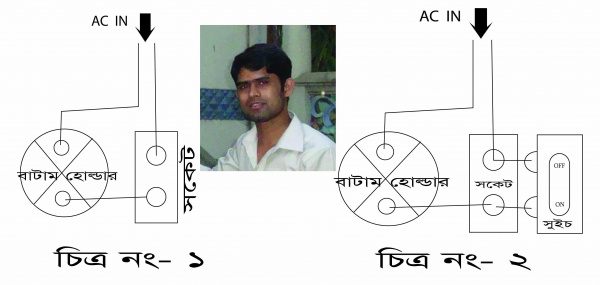 ১নং চিত্রের মত করে সংযোগ দিলে সুধু সিরিজ হিসেবে ব্যবহার করতে পারবেন আর ২ নং চিত্রের মত করে সংযোগ দিলে বাল্বটি আলো জ্বালানর কাজে ব্যবহার করতে পারবেন ।
