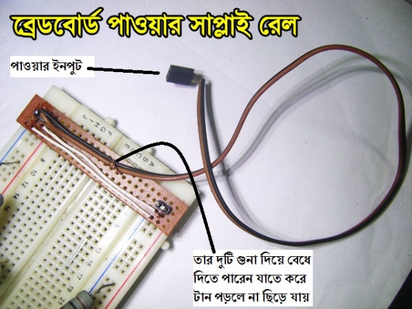 যারা ইলেকট্রনিক্স এর বিভিন্ন প্রজেক্ট সার্কিট আকারে ব্রেড বোর্ডে অ্যাসেম্বল করে কাজ করে তাদের কাছে পাওয়ার সাপ্লাই আব্যশ্যক । আমরা জানি ব্রেড বোর্ডের দুই পাশে উপরে ও নিচে দুইটি করে মোট 4 টি পাওয়ার রেল রয়েছে যেগুলোর দুইটি পজেটিভ ও দুইটি নেগেটিভ চিহ্নিত । আমরা বড় কোন সার্কিট অ্যাসেম্বল করার সময় প্রায়ই উভয় রেল থেকে কানেকশন টেনে আনতে হয় যা খুবই বিরক্তিকর । আমিও বিরক্ত হই, তাই আজকে আপনাদের দেখাব কিভাবে একটি ব্রেড বোর্ডের পাওয়ার রেল বানিয়ে একই সাথে ৪ টি রেলে পাওয়ার সরবরাহ করা যায় । তবে চলুন কথা না বাড়িয়ে কাজে যাওয়া যাক ।