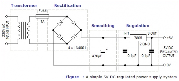 5v পাওয়ার সাপ্লাই তৈরির জন্য প্রয়োজণীয় সার্কিট ডায়াগ্রাম