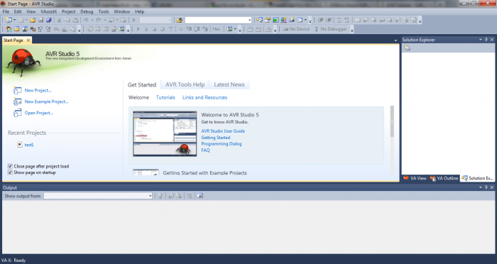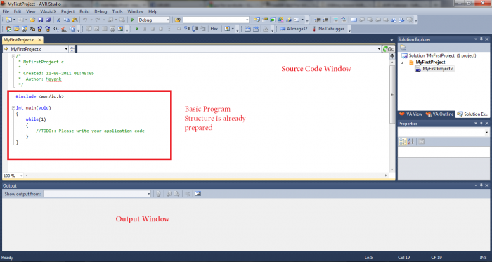 AVR Studio 5 ইন্সটল করা হলে Start → All Programs → Atmel AVR Tools → AVR Studio 5.0 নির্দেশনা অনুসরণ করে ওপেন করুন।