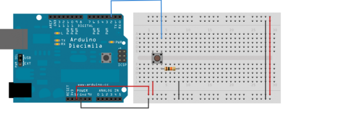 আমরা এমনভাবে সার্কিটি তৈরি করবো যাতে করে 10k ohm রেজিস্টরটি সংযুক্ত হবে GND এবং D2 এর মধ্যে। আর সুইচটাকে লাগাতে হবে D2 এবং VCC এর মধ্যে। এতে করে সুইচটি Open থাকলে D2 লজিক LOW হবে এবং সুইচ Close থাকলে D2 লজিক HIGH হবে।