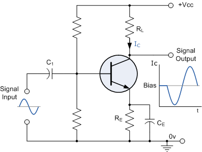 দুটো রেজিস্টর লাগানো আছে মেইন সাপ্লাই এবং গ্রাউন্ডের মাঝে।R2 রেজিস্টর এর মাঝে ভোল্টেজ ড্রপ বেস এমিটার জাংশান কে ফরোয়ার্ড বায়াস প্রদান করে।এর জন্যই কোনো এক্সটারনাল ইনপুট সিগ্ন্যাল ছাড়াই কালেক্টরে একটা কারেন্ট আউটপুট পাওয়া যায়। এটাকে বলে “জিরো সিগ্ন্যাল কালেক্টর কারেন্ট”।
