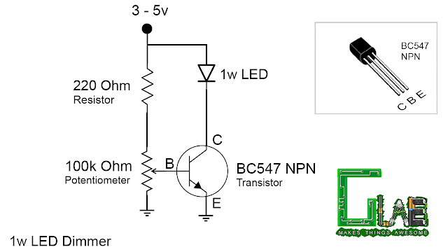 আমার এক বন্ধু আমাকে এলইডি এর ব্রাইটনেস কন্ট্রোলার তৈরি করতে বলেছিলো। তার টেবিল ল্যাম্পের ব্রাইটনেস কন্ট্রোল করার জন্য। সে ৫৫৫ আইসি দিয়ে পিডব্লিউএম বা পালস ওয়াইডথ মডুলেটর সার্কিট তৈরির চেষ্টা করেছিলো, কিন্তু সামান্য কাজের জন্য একটা কমপ্লেক্স সার্কিট সে তৈরি করতে চাচ্ছিলো না। আমি তাকে ভলিউম (পটেনশিওমিটার) এবং ট্রান্সজিস্টার ব্যবহার করে কাজটা করতে বলেছিলাম।